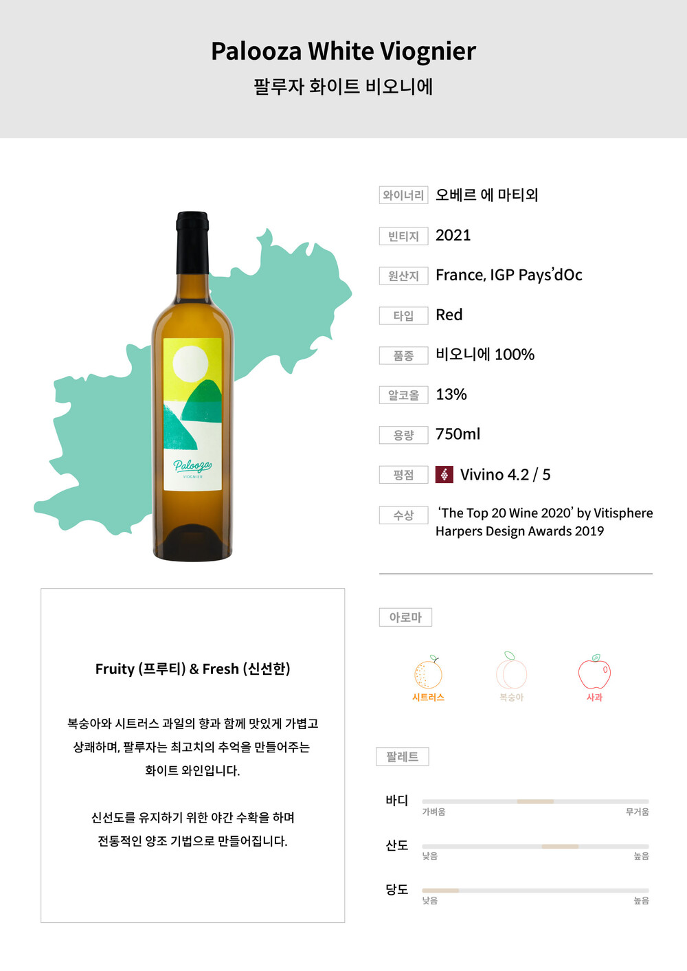 복숭아와 시트러스 과일의 향과 함께 맛있게 가볍고 상쾌하며, 팔루자는 최고의 그리고 가장 예상치 못한 추억의 화이트 와인입니다.