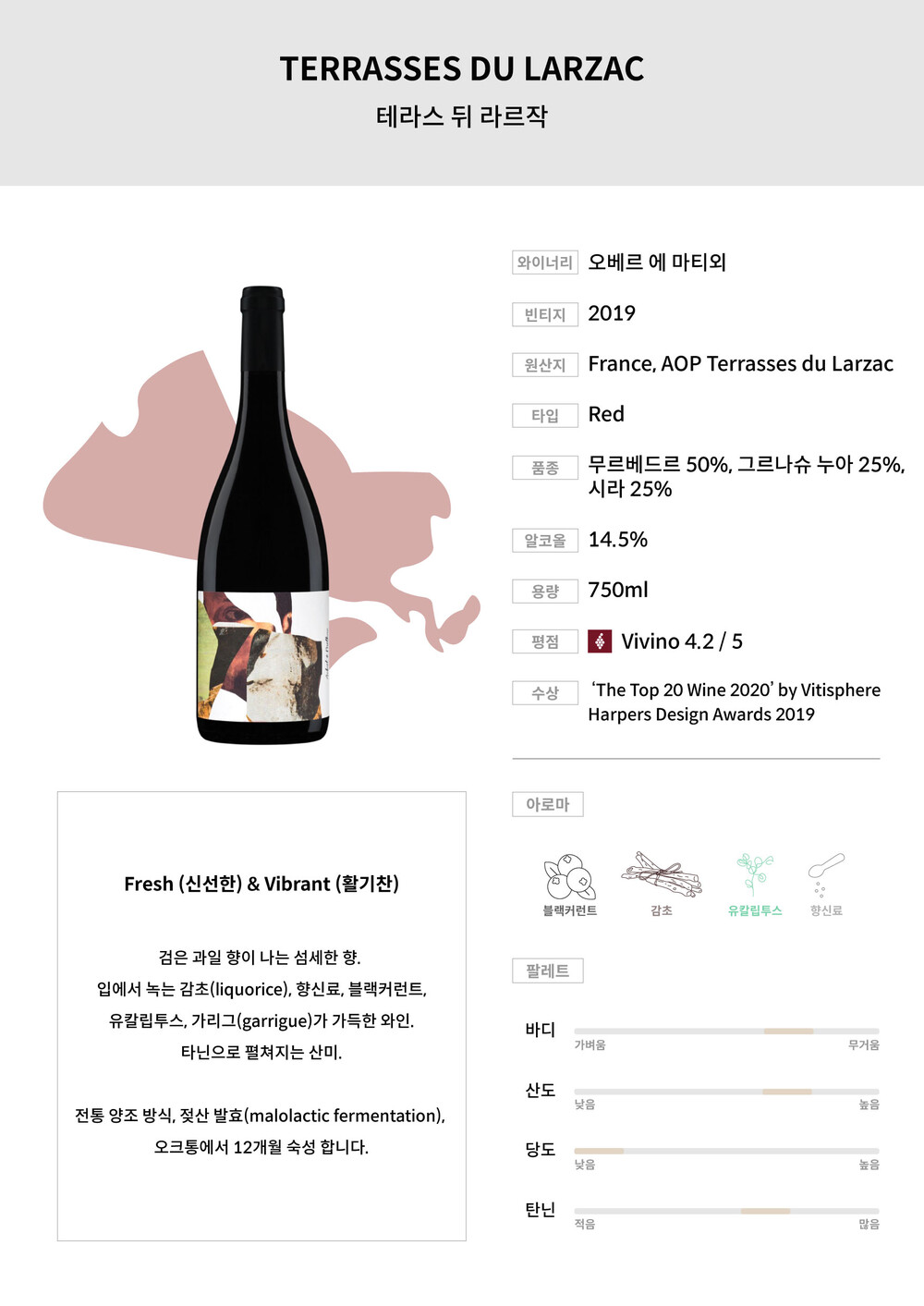 -포도 품종: 무르베드르 50%, 그르나슈 누아 25%, 시라 25%