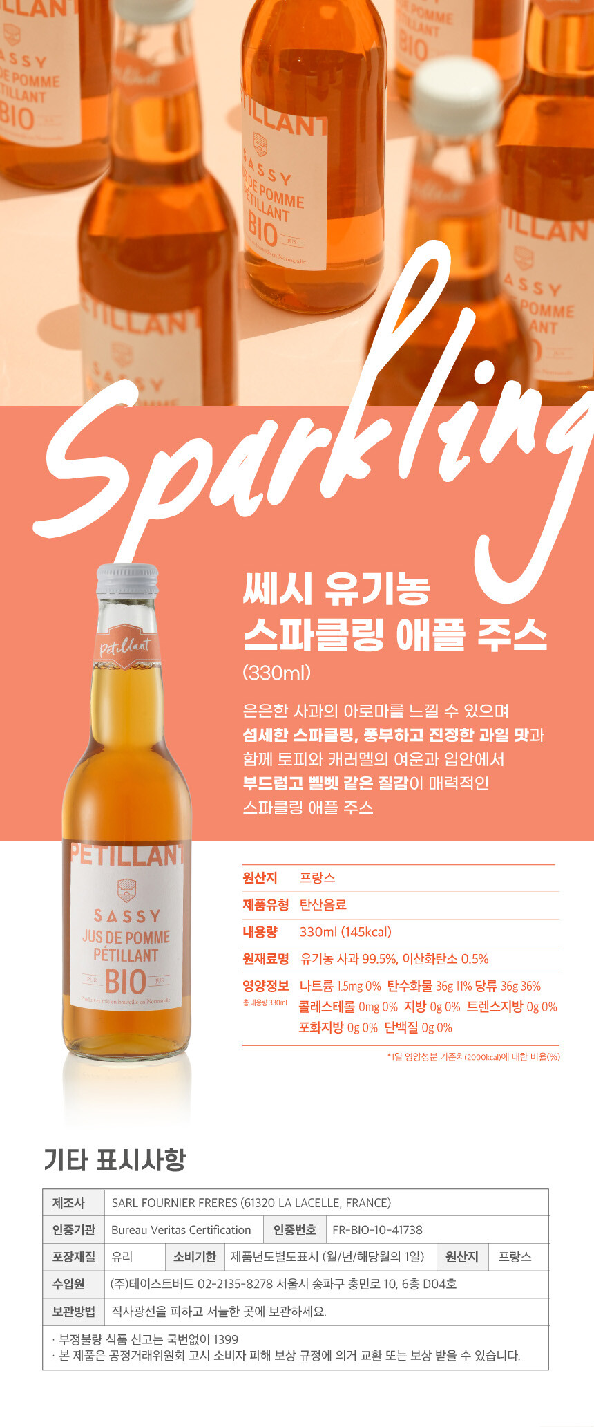 쎄시 유기농 애플 주스 / 스파클링 애플 주스 330ml